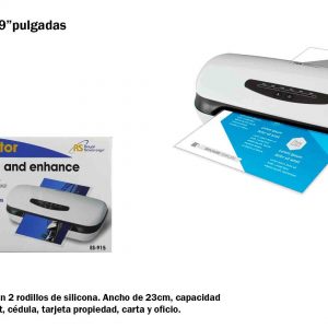 Tamaño Carta y Oficio Material: Plastico Trabaja Solo con bolsillos Ancho de laminación 23 cm Lamina hasta calibre 7 (175